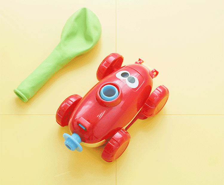 Załóż balon na pojazd lub rakietę, podłącz go do pompki i kilkoma ruchami napełnij powietrzem. Wciśnij przycisk – a samochodzik pomknie do przodu lub rakieta wystrzeli w niebo!