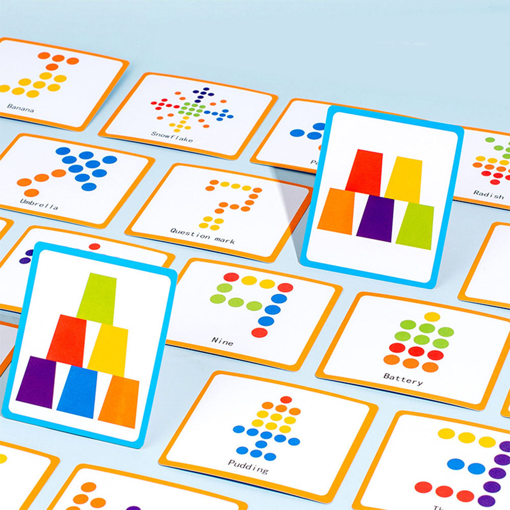 - 50 dwustronnych kart z układami do odwzorowania (jedna karta: 7×5 cm).
