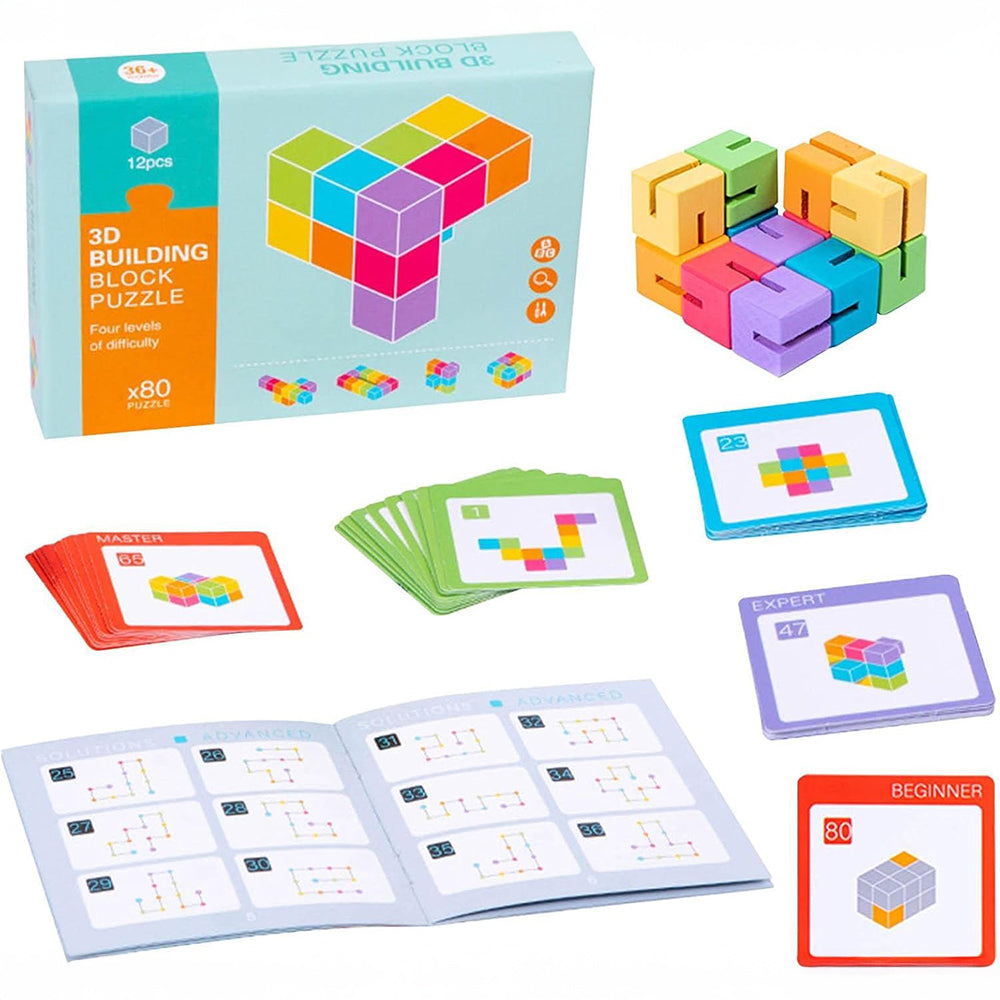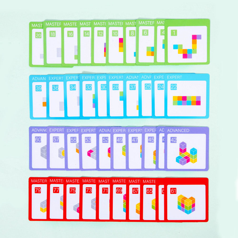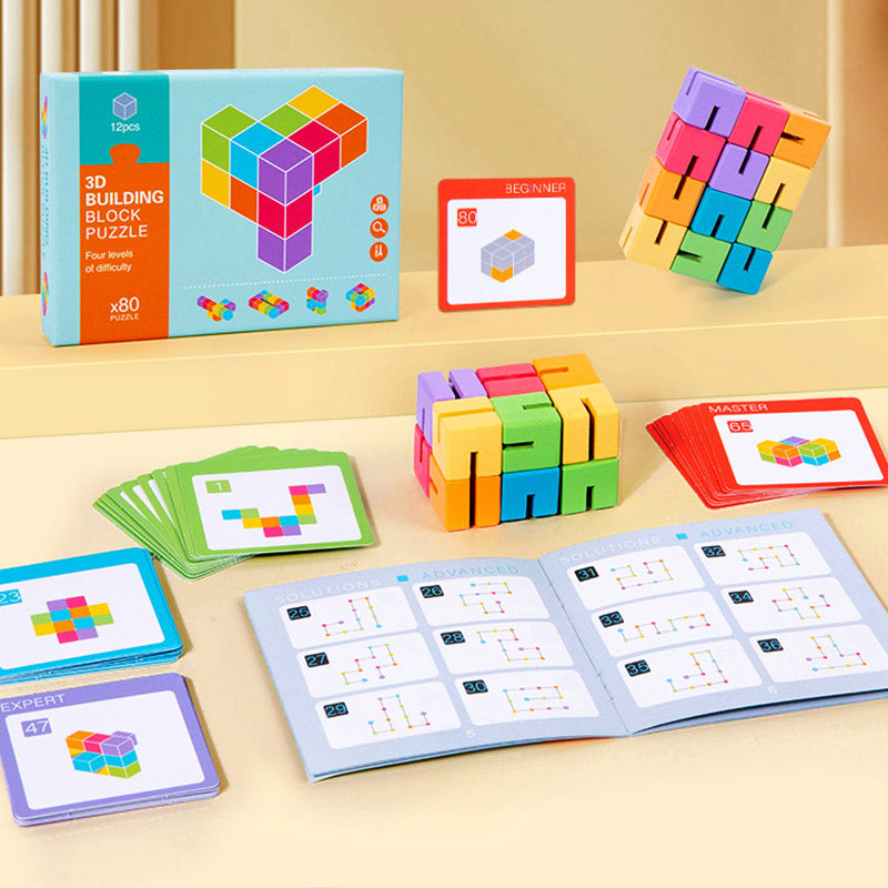 Zabawka edukacyjna 3D – Kolorowe klocki logiczne z kartami zadań