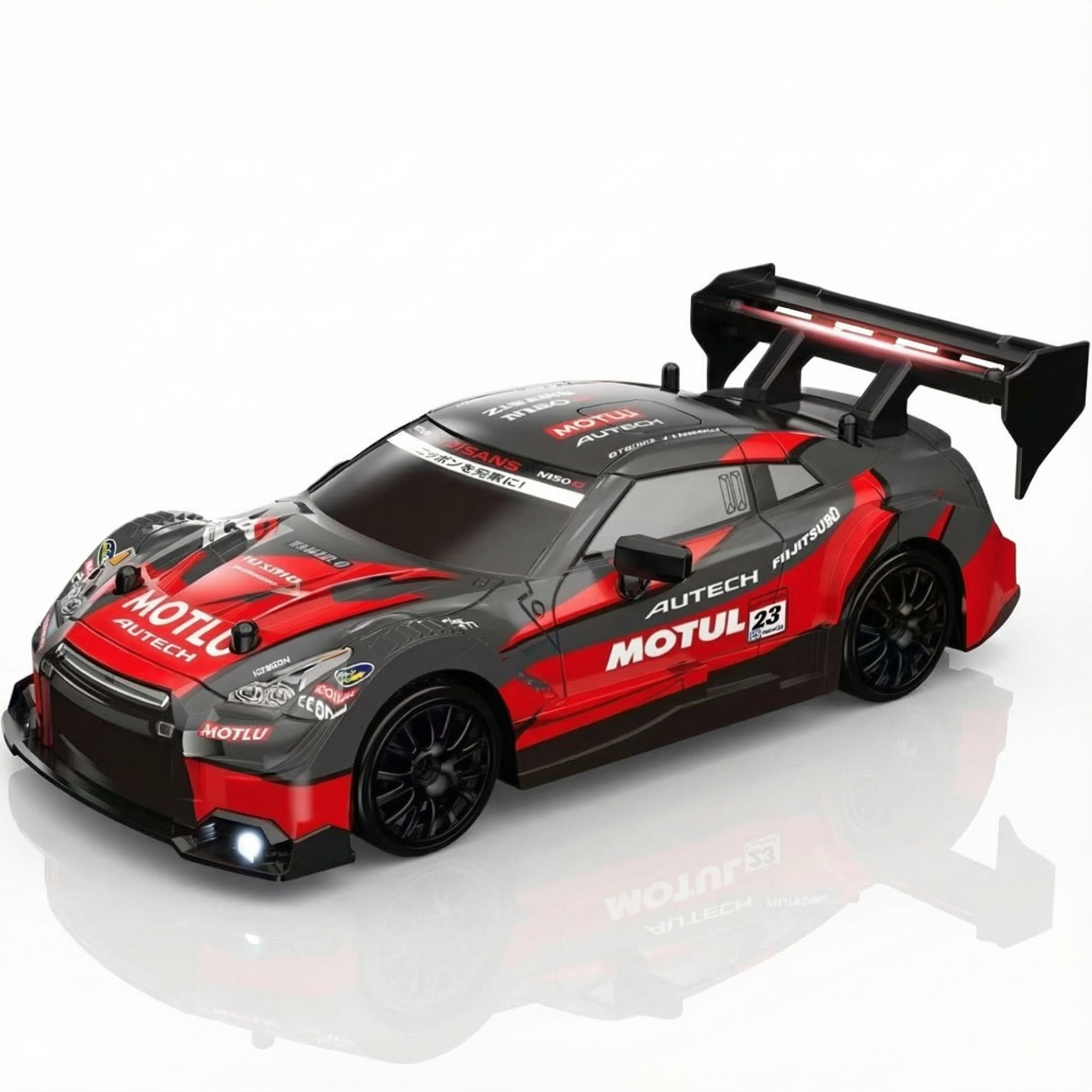 Sportowy samochód RC stworzony do driftu! Model 1:24 oferuje pełne sterowanie 2.4 GHz, efektowne światła LED oraz dwa komplety kół — klasyczne i driftowe. Dzięki dynamicznemu nadwoziu auto świetnie wygląda i jeszcze lepiej jeździ.