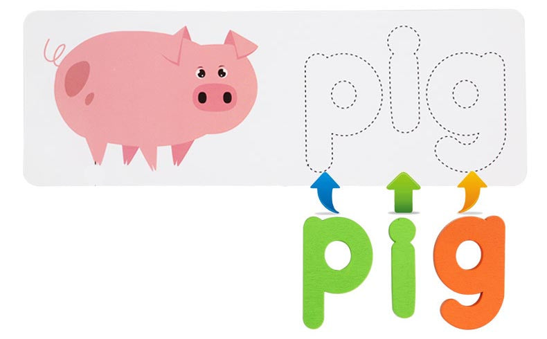 Ten kolorowy zestaw edukacyjny to świetny sposób na wprowadzenie dziecka w świat liter i języka angielskiego. Zadaniem dziecka jest dopasowanie trójwymiarowych literek do odpowiednich miejsc na kartach z ilustracjami. Każda karta zawiera obrazek oraz angielskie słowo, które dziecko odczytuje i układa z dołączonych literek.