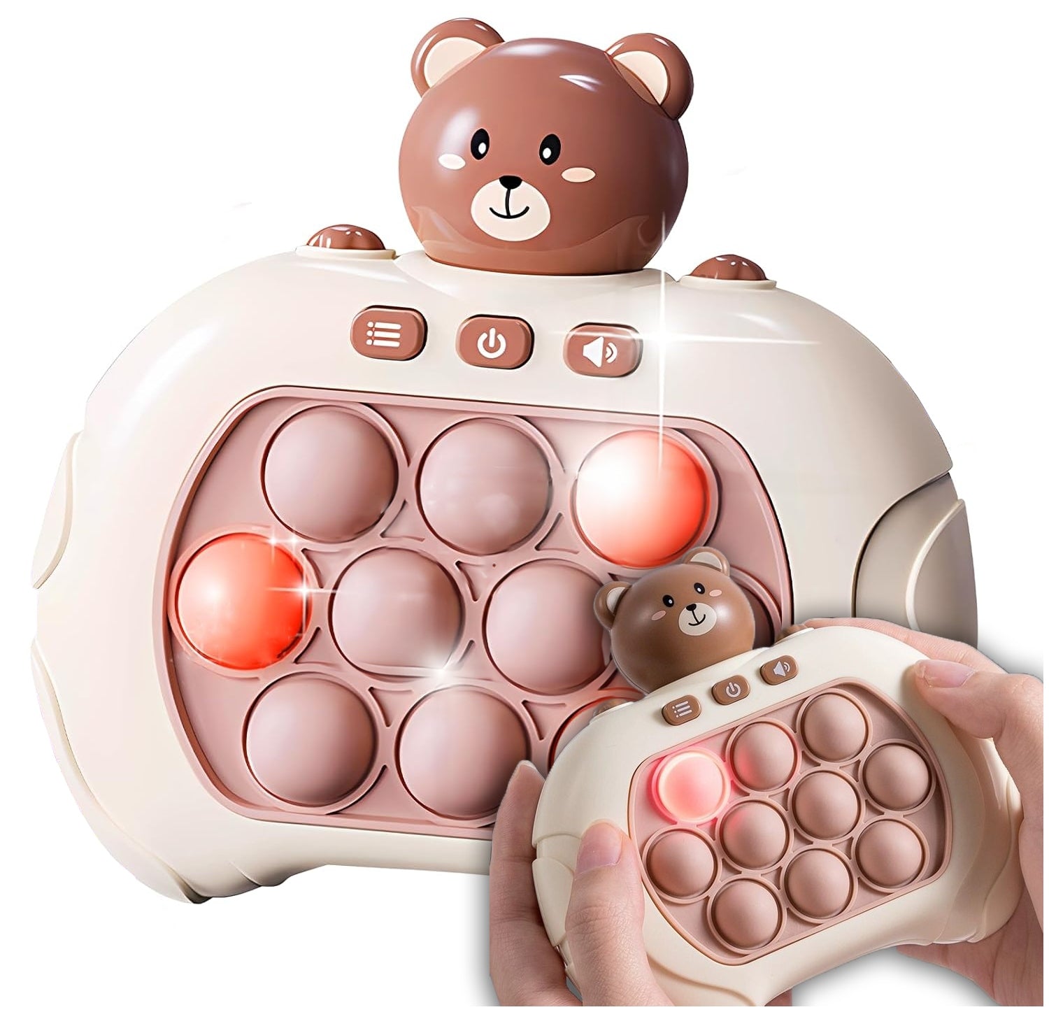 Super wciągająca zabawka, w której wciskasz świecące bąbelki i próbujesz nadążyć za grą. Miękkie klikające przyciski, światełka LED i kilka trybów zabawy sprawiają, że nie da się od niej oderwać. Idealna, żeby zająć ręce i dobrze się bawić – solo lub z kimś!