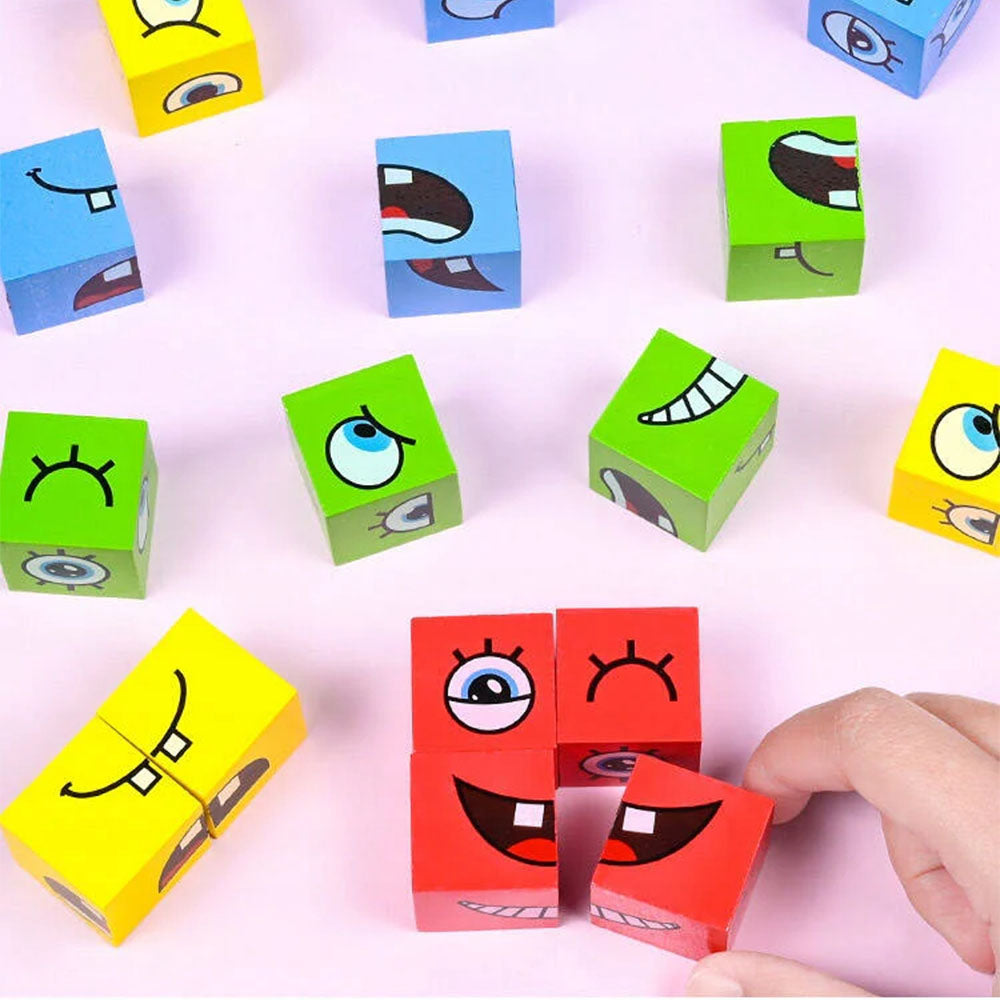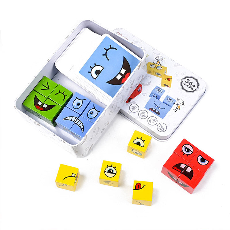 Emocje to kolorowa układanka, która wprowadza dzieci w świat emocji i mimiki twarzy w zabawny i angażujący sposób. Zadaniem gracza jest ułożenie twarzy z drewnianych kostek tak, aby odpowiadała wzorowi na karcie. Każdy klocek przedstawia inny element twarzy – oko, usta, brwi – co pozwala tworzyć setki śmiesznych min i wyrażeń. Wykonana z trwałego, bezpiecznego drewna – idealna do zabawy w domu i w przedszkolu.