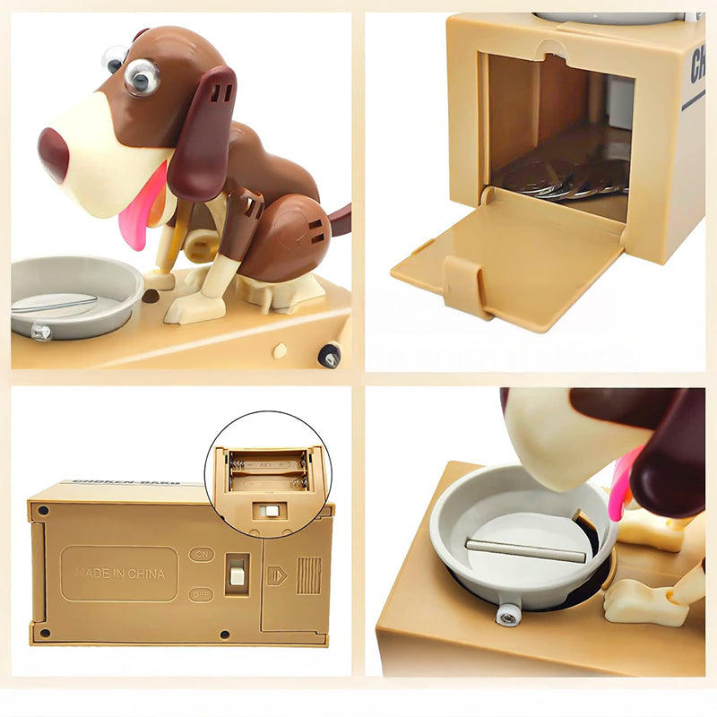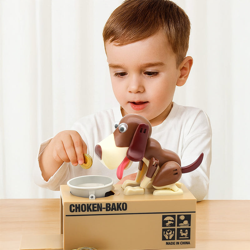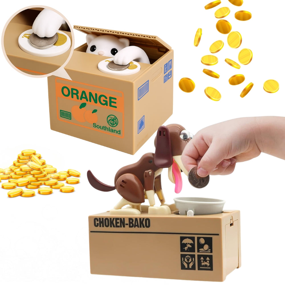 Interaktywna Skarbonka - Wybierz swoją ulubioną wersję: piesek, który „zjada” monety z miski, albo kotek, który sprytnie wykrada pieniążki łapką. Oba modele uruchamiają zabawny mechanizm po położeniu monety, zachęcając dzieci i dorosłych do oszczędzania w wyjątkowo interaktywny i uroczy sposób.