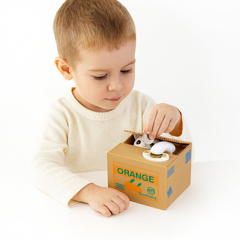 Po położeniu monety uruchamia się mechanizm, który tworzy zabawną animację – mini przedstawienie, które wywołuje uśmiech za każdym razem. To świetny sposób, by oszczędzanie zamienić w zabawę zarówno dla dzieci, jak i dorosłych.