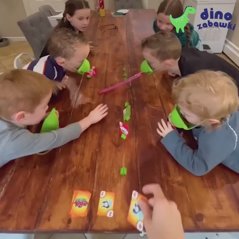 Zabawna gra rodzinna, która gwarantuje mnóstwo śmiechu i emocji! Gracze zakładają specjalne maski z rurką i próbują przechwytywać kartonowe elementy leżące na stole. Na kartach widnieją zabawne obrazki, które trzeba szybko rozpoznać i „złapać”.