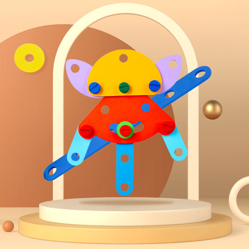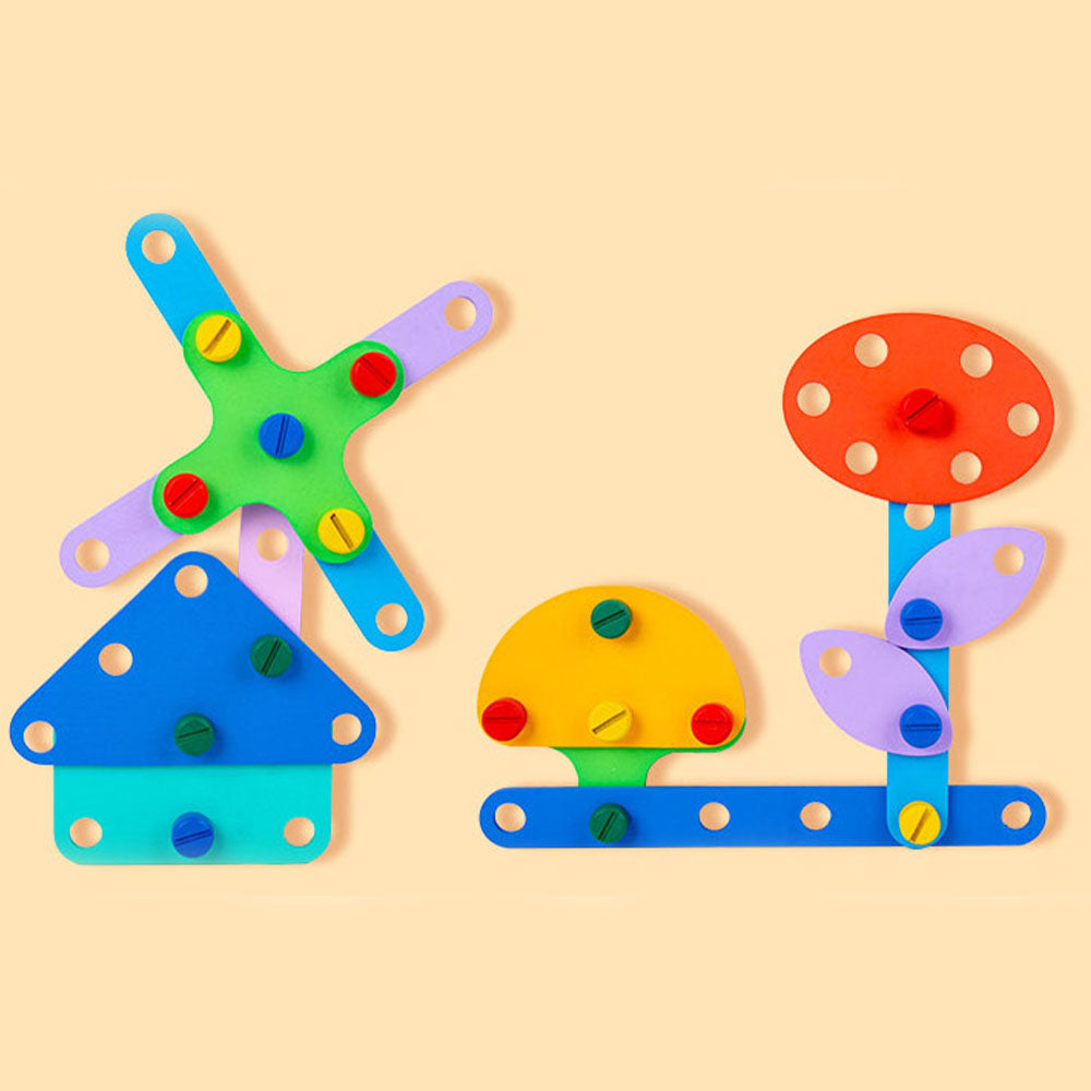 Pozwól dziecku odkrywać świat inżynierii i majsterkowania dzięki edukacyjnemu zestawowi klocków konstrukcyjnych. Dziecko skręca śrubki, łączy kolorowe elementy i buduje własne konstrukcje. Zabawa polega na tworzeniu różnych kształtów z drewnianych części przy użyciu nakrętek i śrub. To idealny sposób na rozwijanie wyobraźni i sprawności rąk.