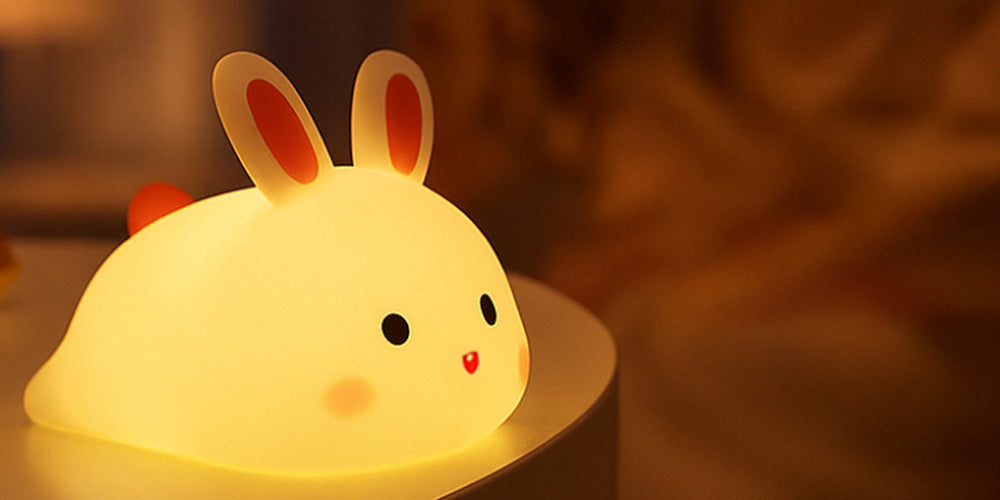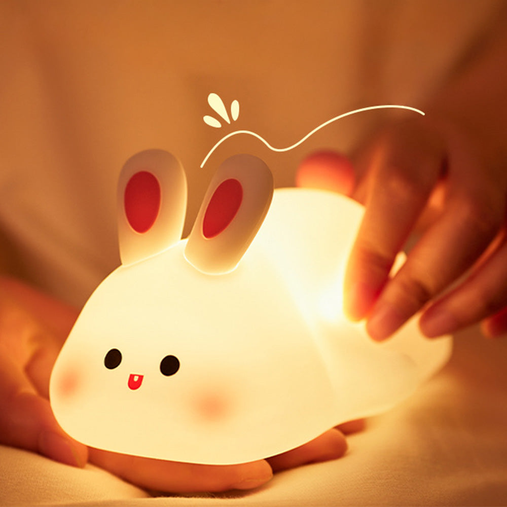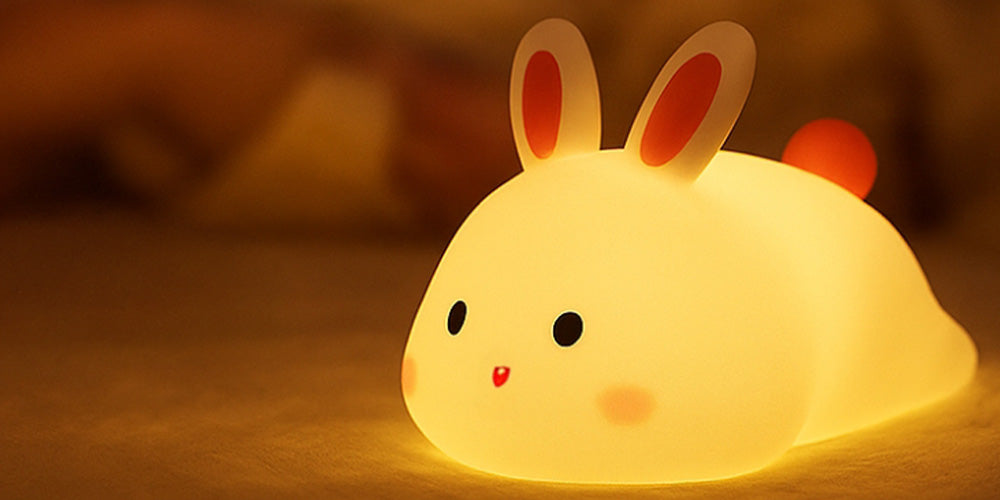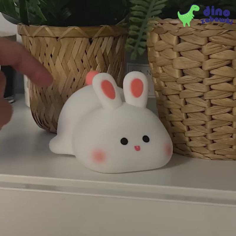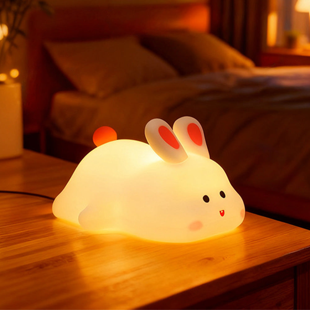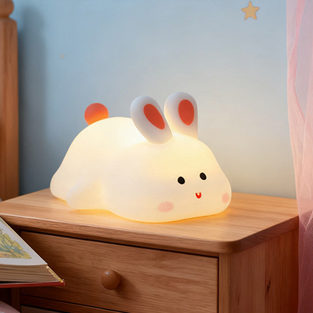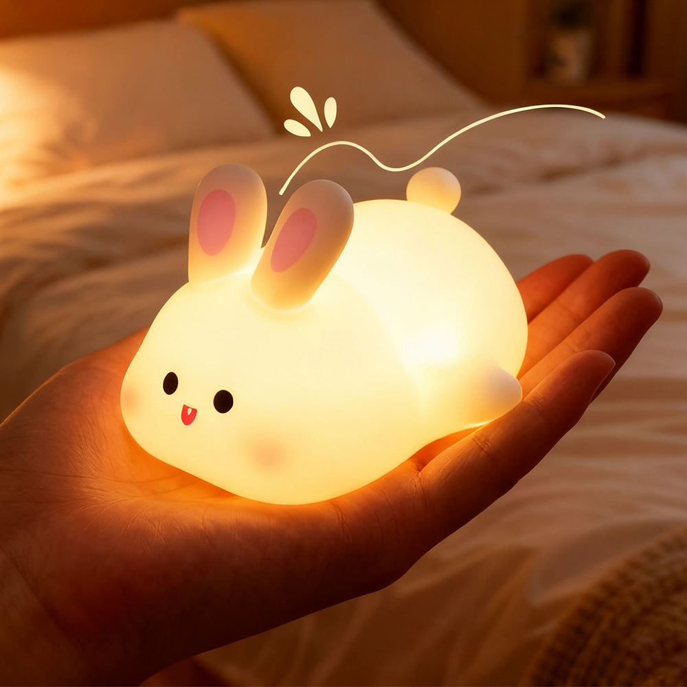 Lampka króliczek wykonana z miękkiego, bezpiecznego silikonu świeci delikatnym, ciepłym światłem, tworząc przytulną atmosferę w pokoju dziecka i sypialni. Jej uroczy design, elastyczny materiał i wbudowane światełko sprawiają, że jest idealna na nocne wyciszenie, dekorację oraz jako słodki prezent dla najmłodszych.