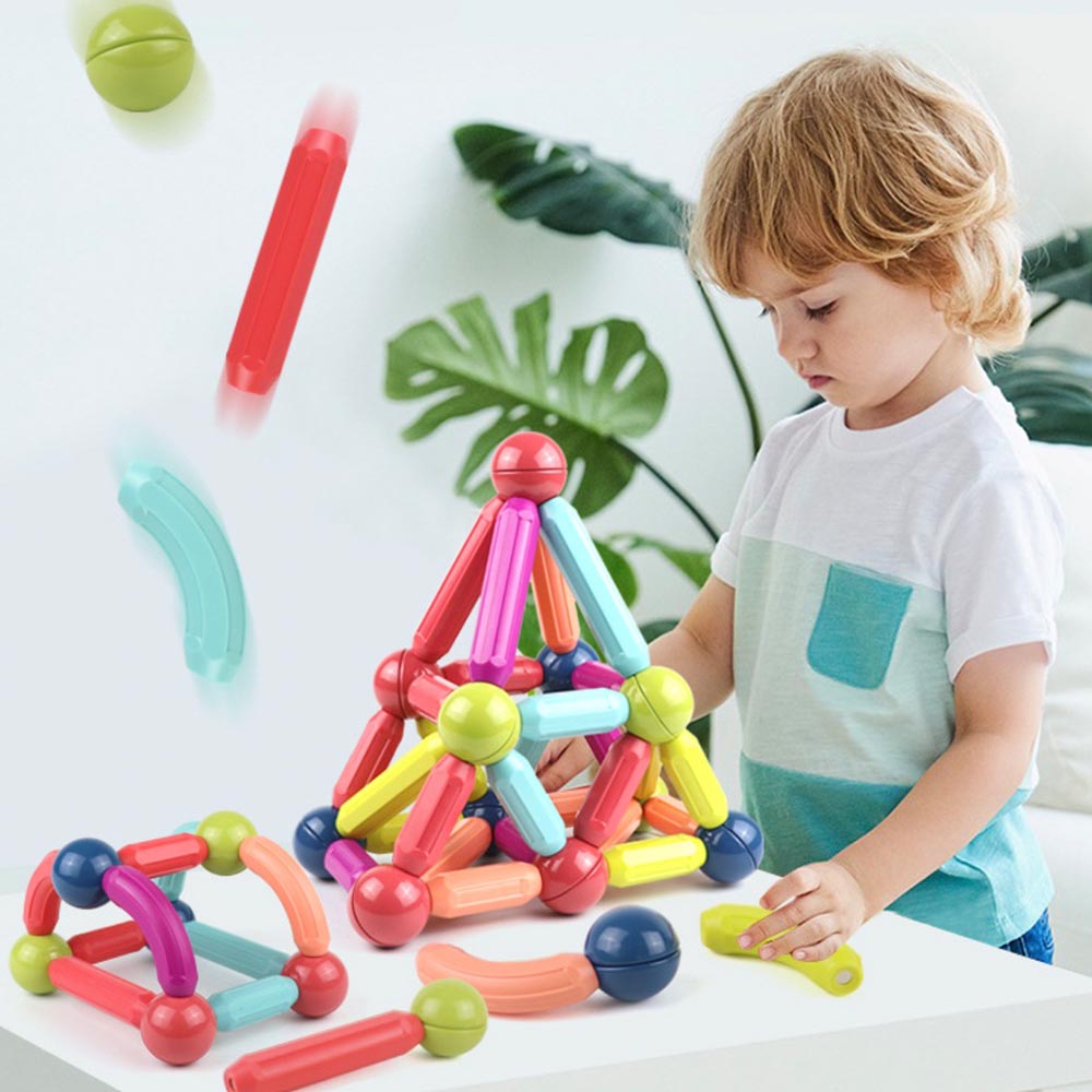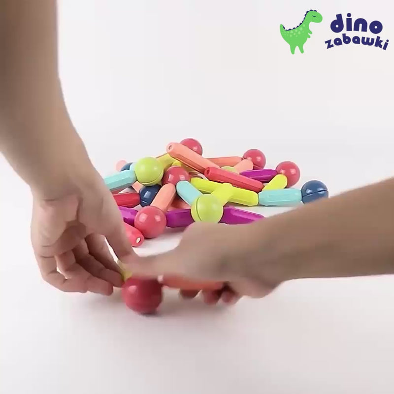 Zabawa polega na łączeniu kolorowych patyczków i kulek za pomocą wbudowanych magnesów, z których można tworzyć dowolne konstrukcje – od prostych kształtów po złożone budowle, pojazdy i figury geometryczne. Dziecko może eksperymentować, budować według własnego pomysłu lub inspirować się gotowymi modelami. To kreatywna, rozwijająca zabawa, która uczy poprzez działanie – bez kleju, bez siły, za to z ogromem frajdy i satysfakcji z tworzenia!