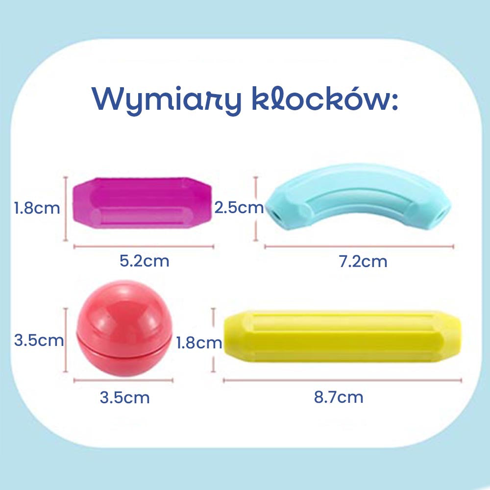 Obrotowe kule magnetyczne i mocne magnesy pozwalają łączyć klocki w dowolnym kierunku – bez ograniczeń! Konstrukcje są stabilne, ruchy płynne, a zabawa rozwija kreatywność i uczy zasad magnetyzmu w praktyce.