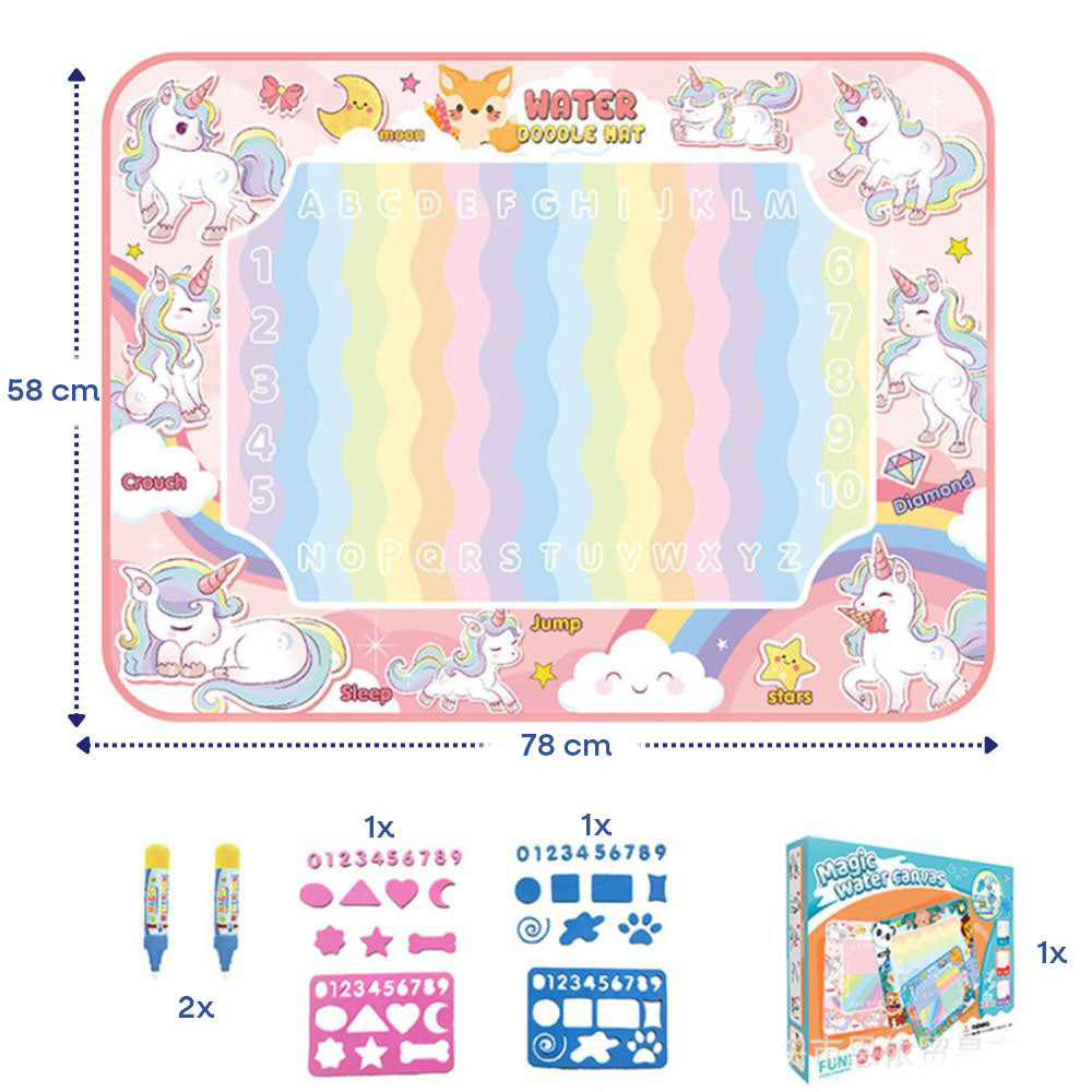 Mata wodna to magiczna zabawka, dzięki której dziecko może rysować pisakiem wypełnionym czystą wodą. Po zetknięciu z matą pojawiają się kolorowe wzory i rysunki, które po kilku minutach znikają, gdy woda wyschnie.