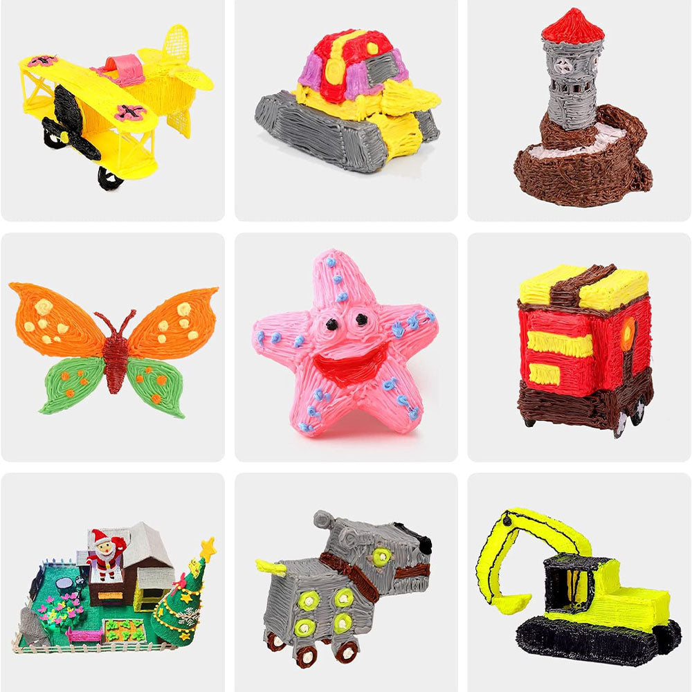 Ołówek 3D szybko nagrzewa się do niskiej, bezpiecznej temperatury, dzięki czemu mogą korzystać z niego dzieci. Filament wysuwa się równomiernie, tworząc gładkie i estetyczne linie, co ułatwia budowanie rzeźb, figur, modeli 3D oraz płaskich wzorów.