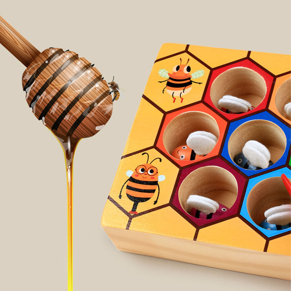 Ta zabawka edukacyjna w formie plastra miodu to doskonały sposób na rozwój motoryki małej i naukę poprzez zabawę. Zadaniem dziecka jest przenoszenie pszczółek za pomocą dołączonych szczypiec i umieszczanie ich w odpowiednich kolorowych komórkach ula. Każda pszczółka pasuje do jednej komórki oznaczonej tym samym kolorem.
