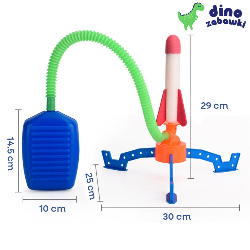 Nasza rakietowa wyrzutnia to idealna zabawka edukacyjna, która uczy przez działanie. Wystarczy jeden energiczny skok na pompkę, by dziecko uruchomiło prawdziwy mechanizm fizyczny. Maluch od razu widzi, jak sprężone powietrze napędza rakietę, jak wysoko może polecieć i jak zmienia się jej tor lotu w zależności od siły nacisku.