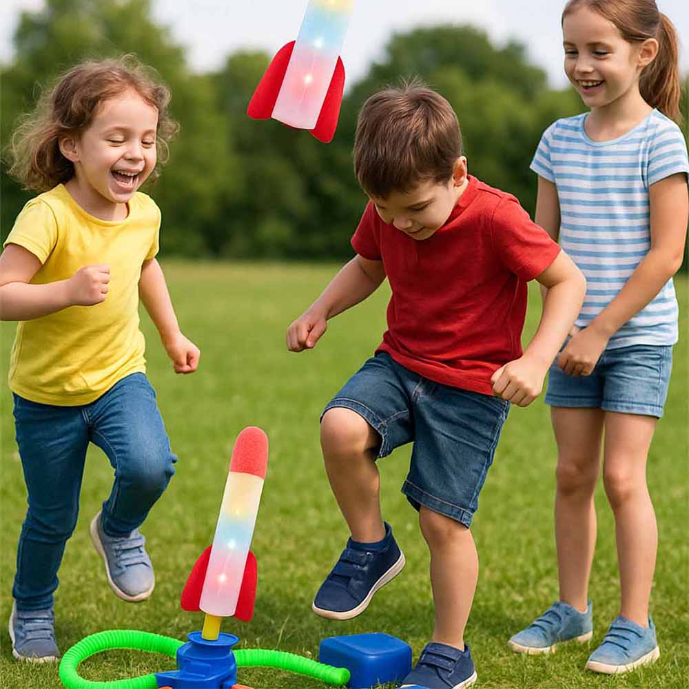 RocketPower to rakietowa wyrzutnia powietrzna, która daje dzieciom mnóstwo ekscytującej zabawy — wystarczy jedno mocne nadepnięcie, aby rakieta wystrzeliła wysoko w niebo! Dynamiczna, widowiskowa i pełna energii, zachwyci każdego małego fanatyka lotów i eksplozji prędkości. Idealna do ogrodu, parku i wspólnych zabaw na świeżym powietrzu!