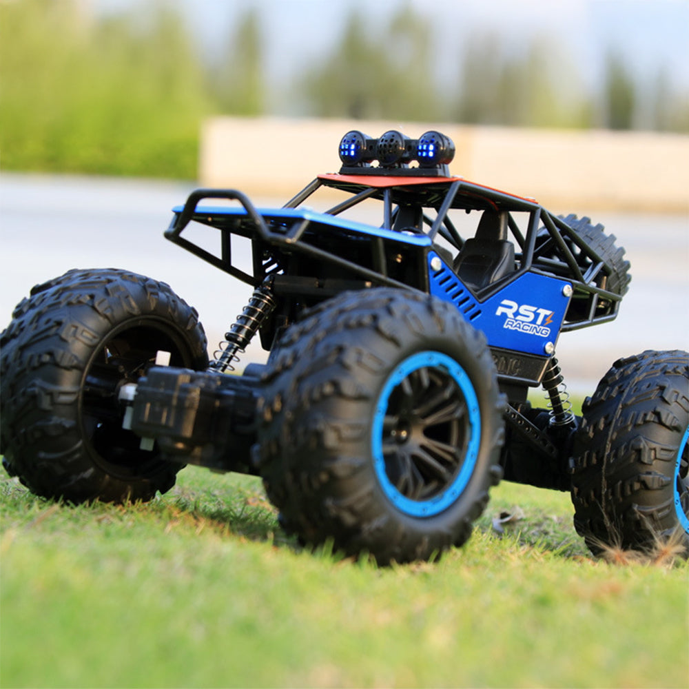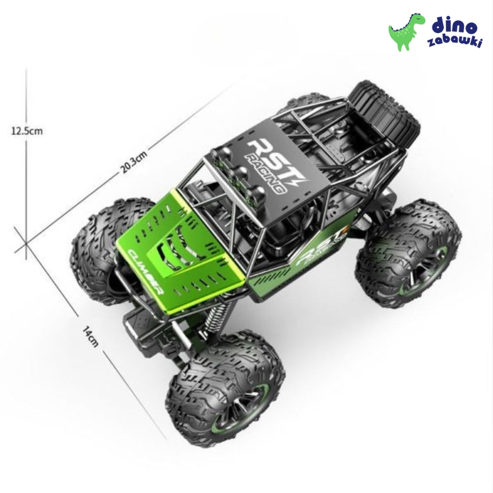 Ten zdalnie sterowany terenowiec został stworzony do jazdy po nierównościach, kamieniach i podwórku. Duże opony terenowe, amortyzatory off-road i mocna konstrukcja zapewniają stabilną jazdę w każdych warunkach. Dzięki sterowaniu 2,4 GHz oraz baterii pozwalającej na do 60 minut zabawy.