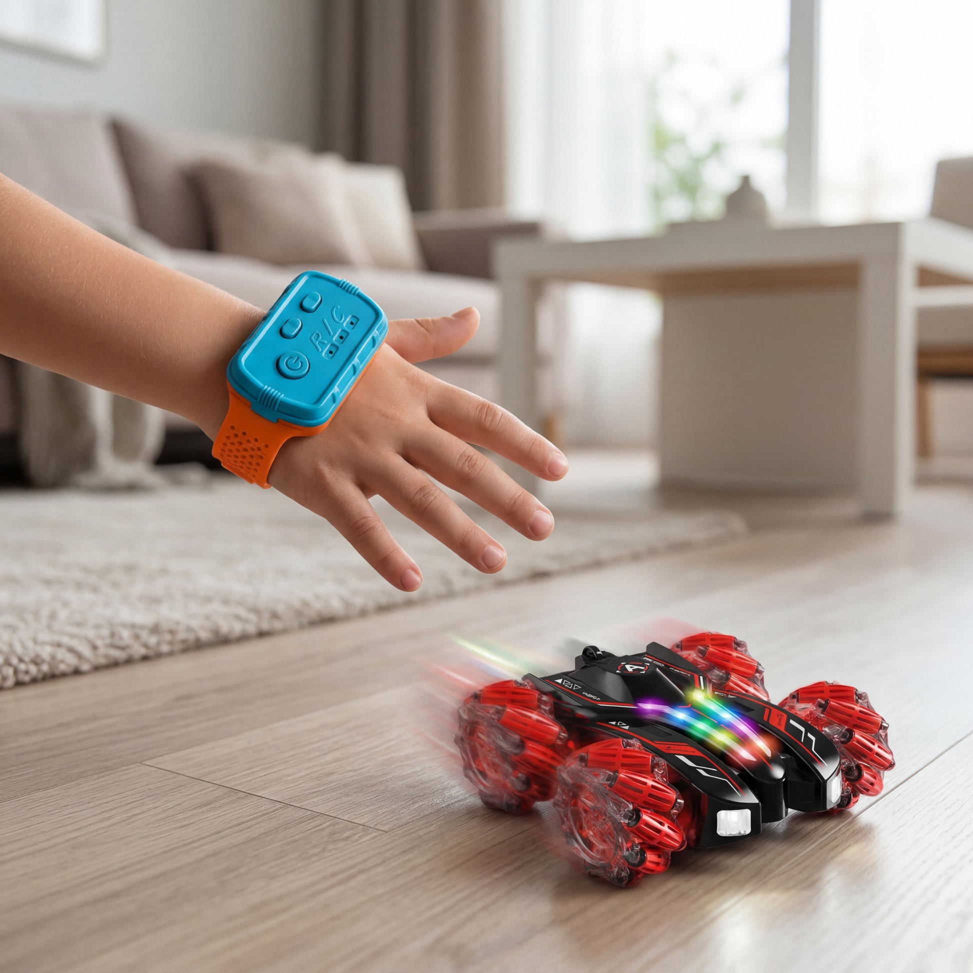 Auto zdalnie sterowane 360° z efektem dymu (PILOT + KONTROLER NA NADGARSTEK)