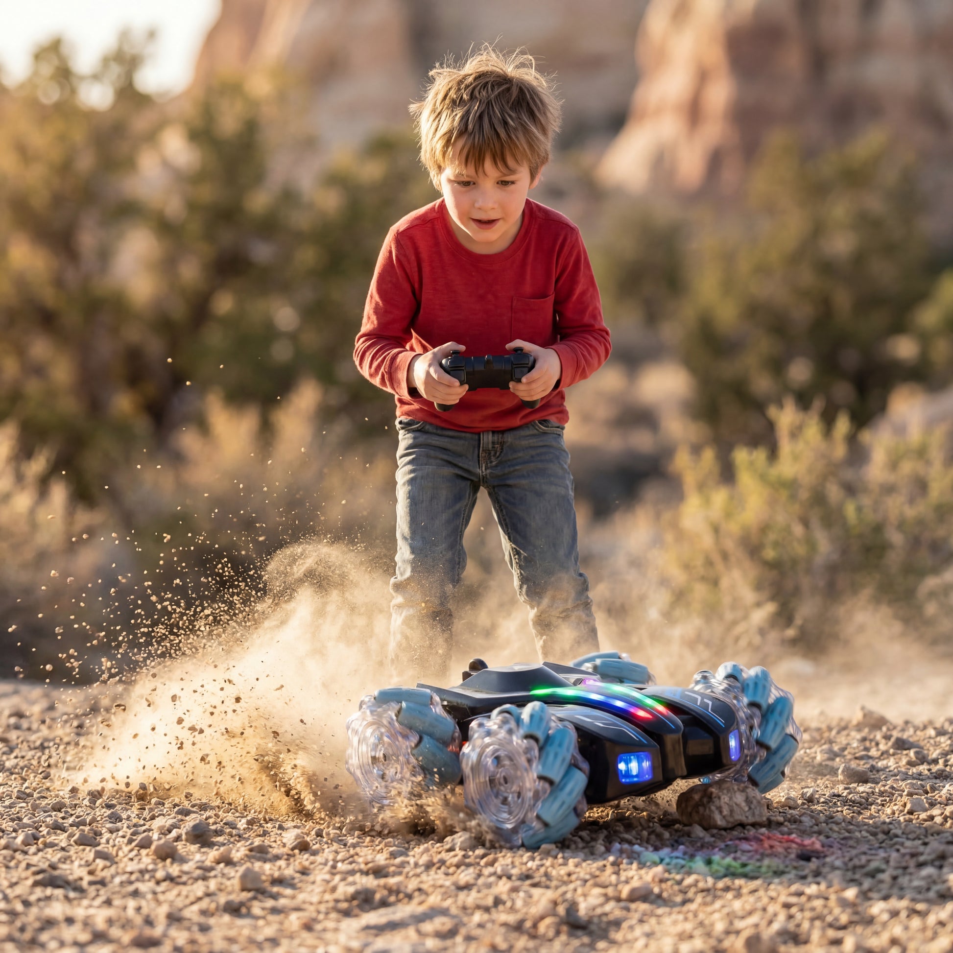 To dynamiczne auto zdalnie sterowane to coś więcej niż zwykła zabawka. Dzięki funkcji jazdy 360° porusza się w każdym kierunku – do przodu, do tyłu i na boki, wykonując efektowne manewry i drift 🔥