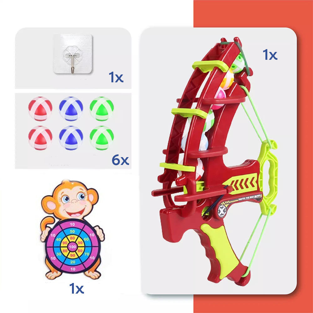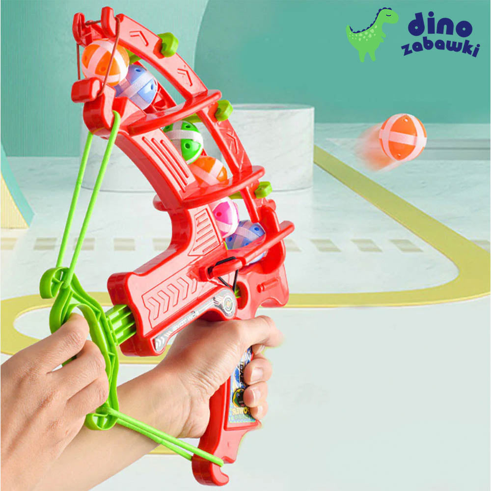 Zabawa polega na celowaniu i strzelaniu kolorowymi piłeczkami na rzepy w specjalną tarczę. Dziecko może strzelać z łuku, naciągając elastyczną cięciwę, albo po prostu rzucać piłeczkami ręcznie. Zadaniem dziecka jest trafić w środek tarczy – im celniej, tym większa satysfakcja!