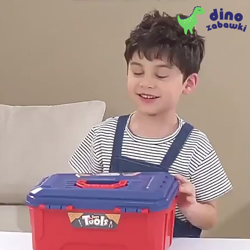 Tools – skrzynia narzędzi małego majsterkowicza to zestaw pełen realistycznych narzędzi, takich jak młotek, klucz francuski, śrubokręt, piła, szczypce, elektryczna wkrętarka oraz elementy do skręcania i budowania. Poręczny warsztat zachęca dzieci do kreatywnej zabawy w konstruowanie i naprawianie.